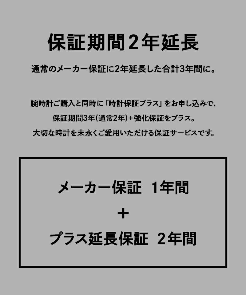 対象の腕時計をお買い上げの際、時計保証プラスを加入いただくと、メーカー保証期間をさらに【2年延長】